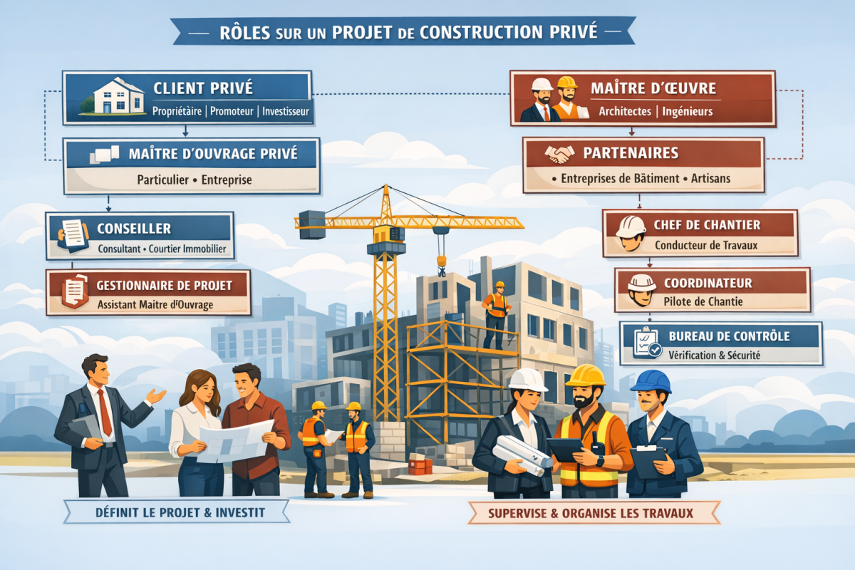 Dans le cadre des projets privés, j’accompagne les maîtres d’ouvrage dans l’ensemble du processus de réalisation. J’assure la préparation des travaux, la coordination des entreprises et le contrôle de l’exécution. Mon objectif est d’offrir un pilotage fiable, transparent et sécurisant, permettant au client de disposer d’un interlocuteur unique et d’un suivi rigoureux.